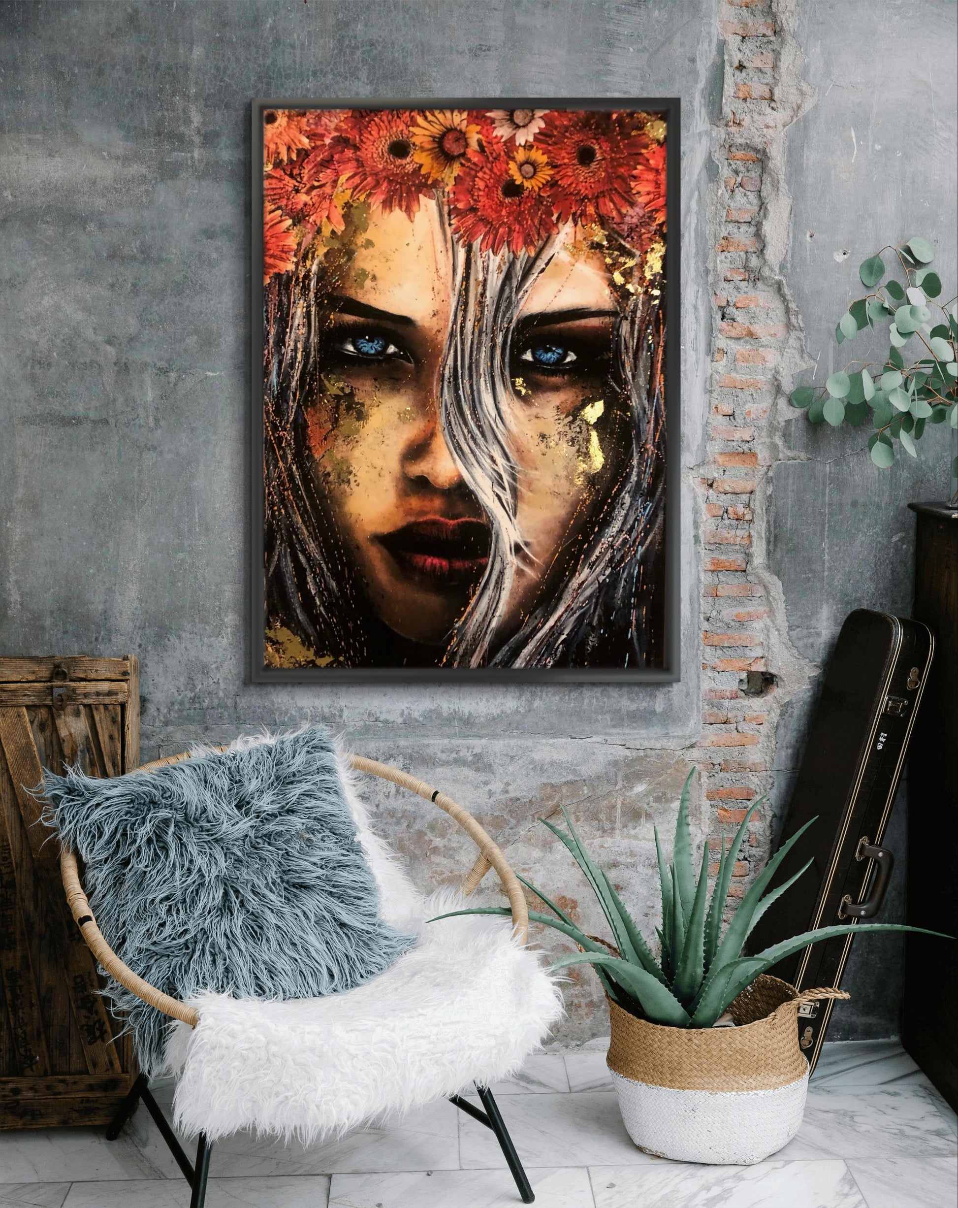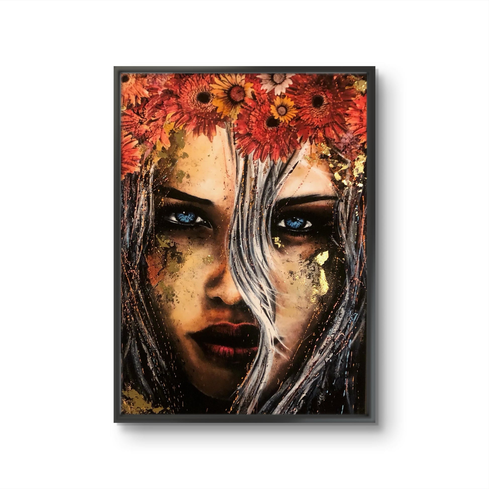 Kunstneren: Fru Bugge: (født 1970) er en autodidakt kunstner som jobber med et urbant popart uttrykk. Gjerne ispedd litt street art. Fru Bugge lager både trykk og originalarbeider. Hun tar ofte ned plakater hun finner gatelangs og lager collager eller maler videre på disse. Mange av silketrykkene hennes er håndkolorert slik at hvert bilde blir ganske unikt. Felles for bildene hennes er at hun ønsker at bildene skal ha litt glam over seg, og at de gjerne skal ha litt «eye candy».